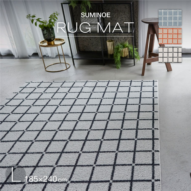 スミノエ ラグ オセロ L 185×240cm 約 3畳 ラグマット ブルー オレンジ ホワイト 広めのリビング、3人掛けソファーがあるお部屋に 国産
