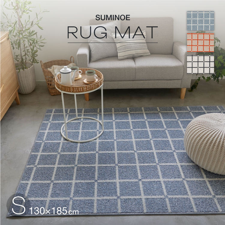 スミノエ ラグ オセロ S 130×185cm 約 1.5畳 ラグマット ブルー オレンジ ホワイト 一人暮らし のリビングにおすすめ!コンパクト 国産