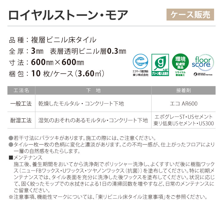 ※必ず、下記「東リビニル床タイル 注意事項」リンクをご確認ください。
