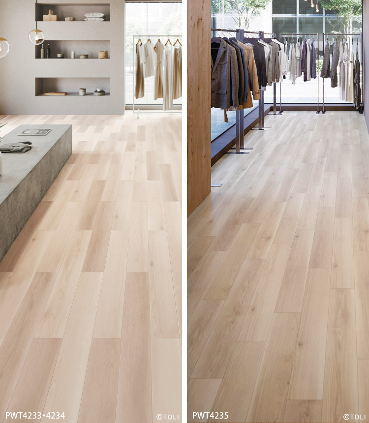 豊富な色柄と多様なサイズ。リアルな木目柄プリントタイル。エコマーク認定商品。