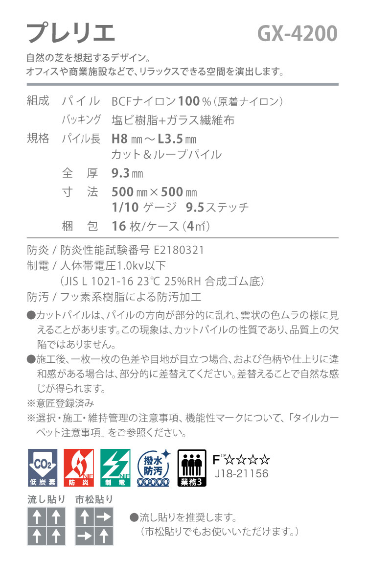 [各色16枚単位]タイルカーペット 東リ 50×50 GX4200 GX-4200 プレリエ 芝生 全2色 パネルカーペット おしゃれ 人工芝 自然