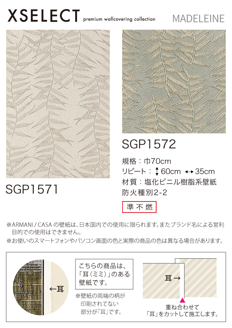 【サンプル 専用ページ】 サンゲツ XSELECT 輸入壁紙 イタリア アルマーニ 植物柄 SGP1571他 全2種類