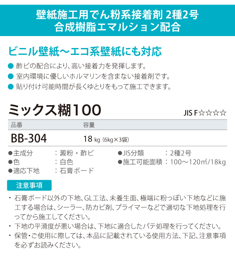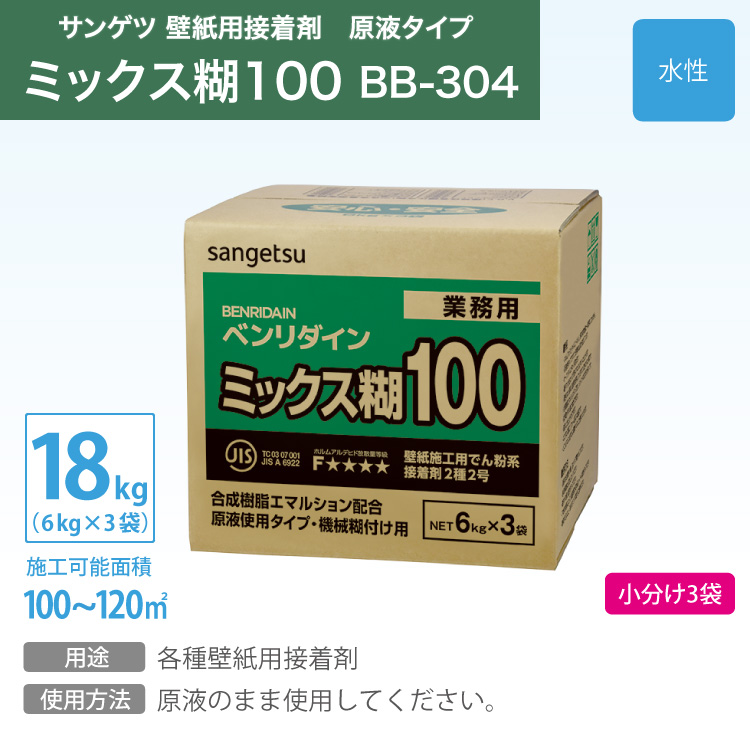 サンゲツ 壁紙用 糊 接着剤 ミックス糊100 BB-304 18kg 水性 でんぷん糊 原液タイプ 壁紙 用 日本製