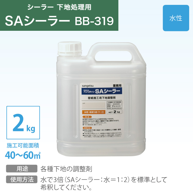 サンゲツ 下地処理剤 SAシーラー ベンリダイン BB-319 2kg/缶 水性 壁紙施工 補強・補修剤 壁紙用 シーラー 日本製