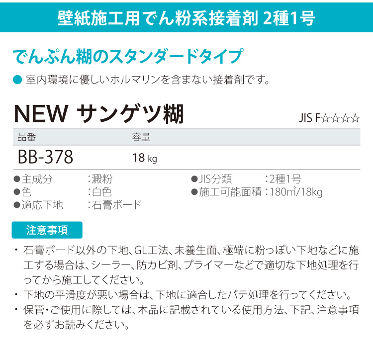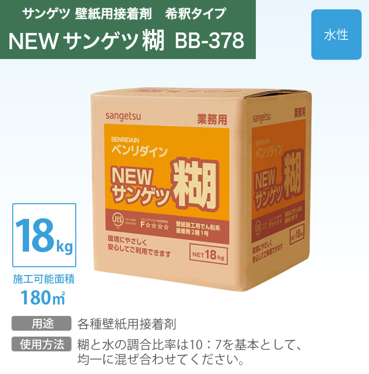 サンゲツ 壁紙用 糊 接着剤 NEW サンゲツ糊 BB-378 18kg 水性 でんぷん糊 希釈タイプ 壁紙 用 日本製