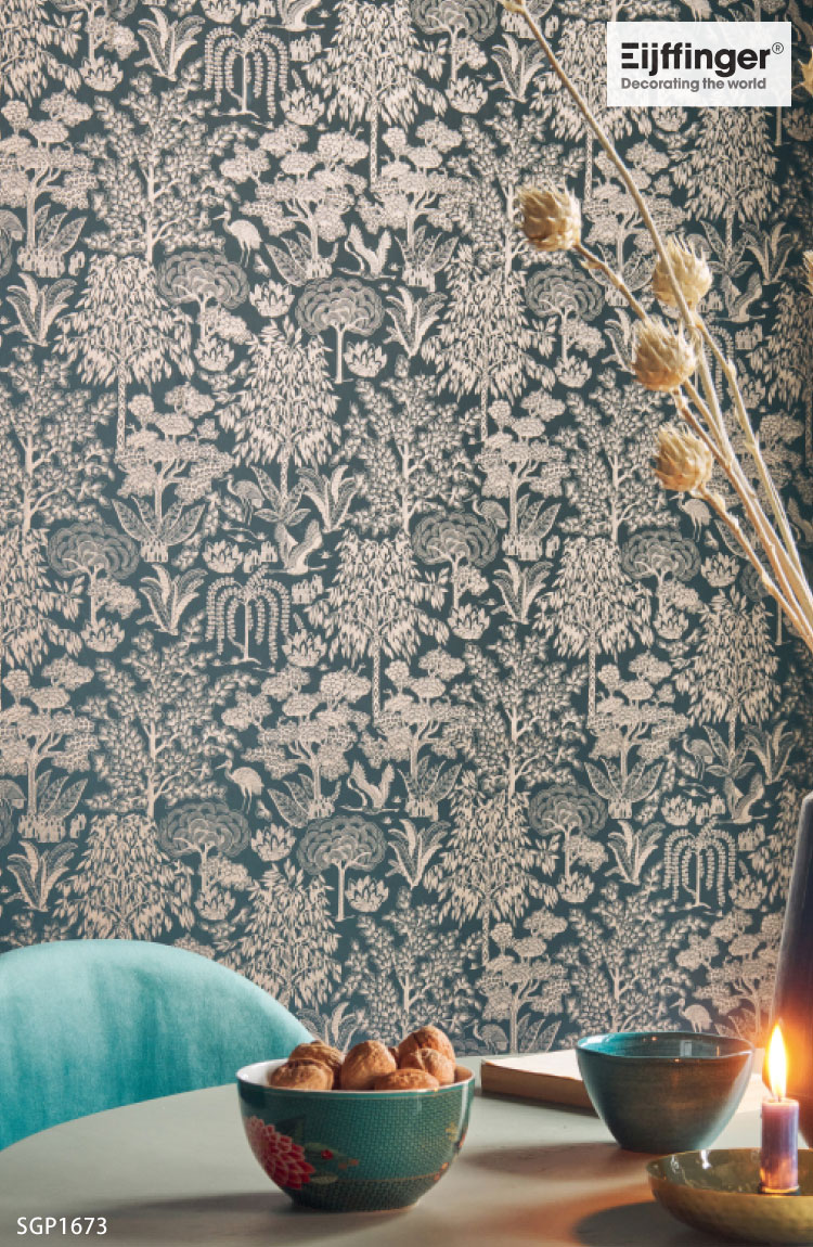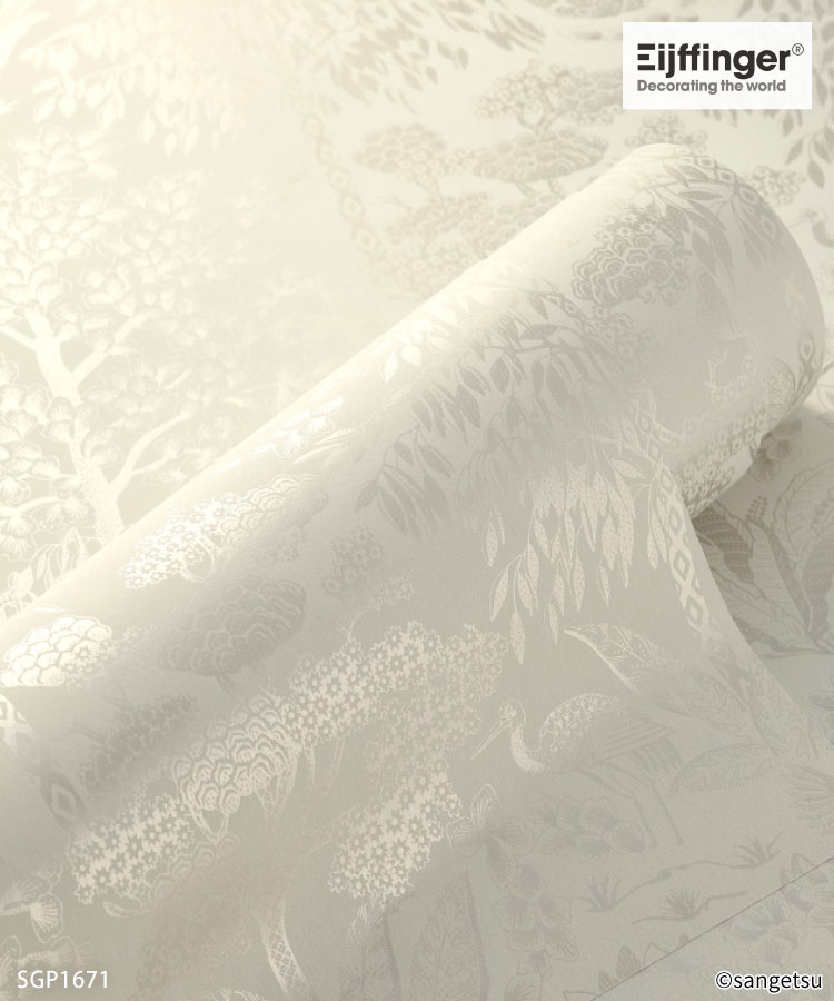 サンゲツ 輸入壁紙 PIP STUDIO Origami Tree 53cm巾 草木 ボタニカル オランダ Eijffinger 鳥 植物柄 光沢 [1ロール単位]