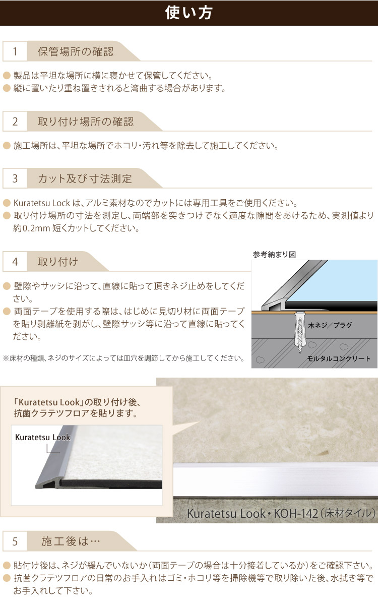 ※施工場所は、平坦な場所でホコリ・汚れ等を除去して施工してください。
