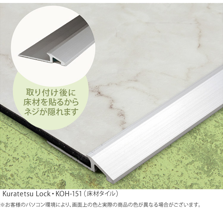 見切り用金物 Kuratetsu Lock 抗菌クラテツフロア用 見切材 金物見切り 210cm アルミ製 シルバー 4.5mm厚フロアタイル用 [1本単位]