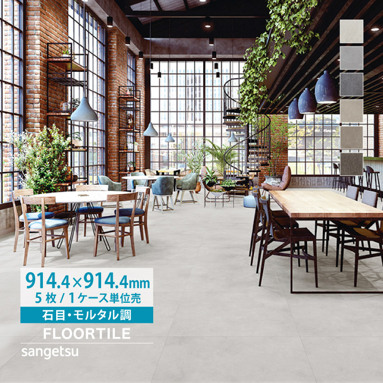 サンゲツ フロアタイル ワイドモルタル Aサイズ 914.4mm 石目 IS2070A IS2071A IS2072A IS2073A IS2074A IS2075A 塩ビタイル 床材 ケース