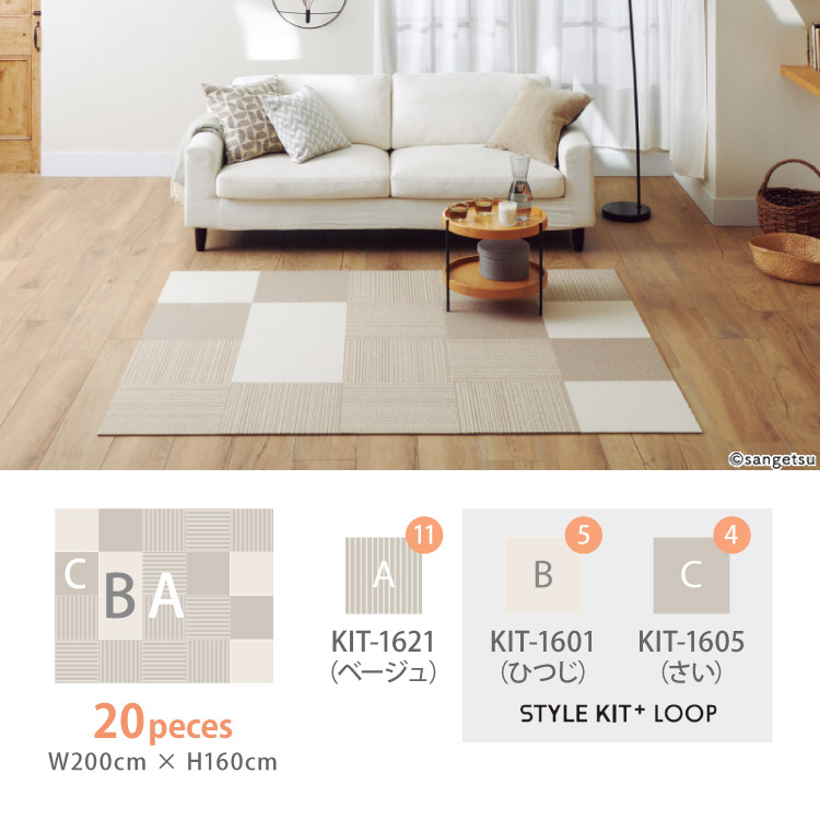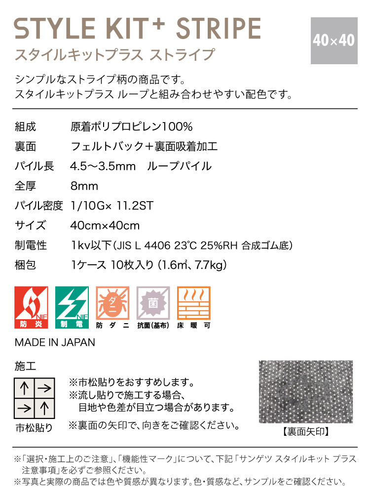 [ご注文は20枚単位]サンゲツ タイルカーペット STYLEKIT+ STRIPE スタイルキットプラス 40x40cm 全3色 40cm角