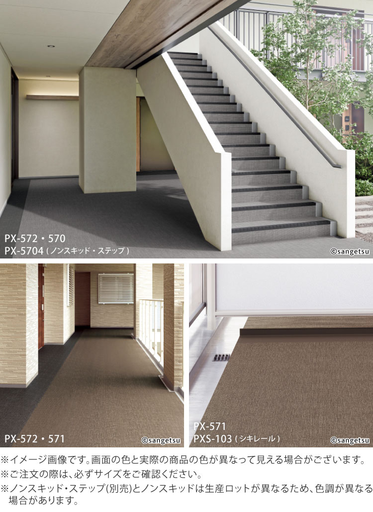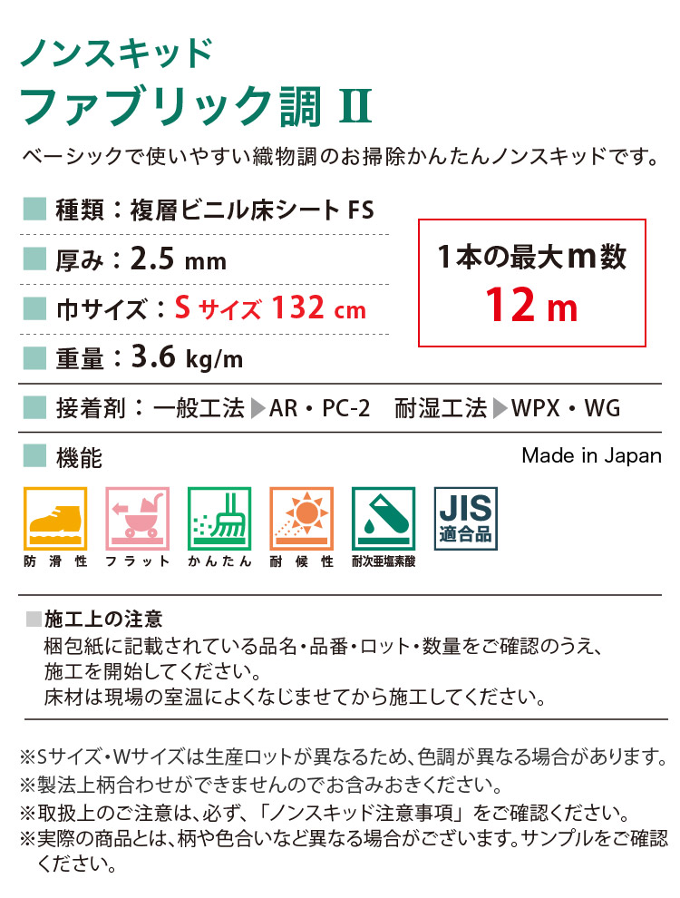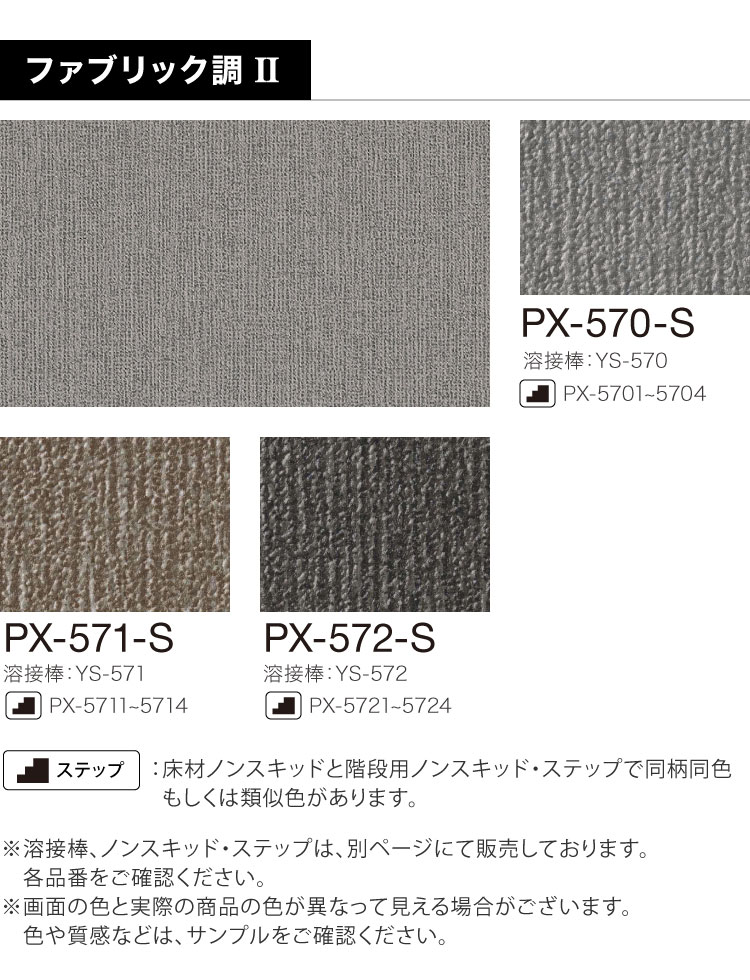 サンゲツ 長尺シート ノンスキッド ファブリック調II Sサイズ 132cm巾 2.5mm厚 無地 [1m以上10cm単位 切売り] PX-570-S PX-571-S PX-572-S