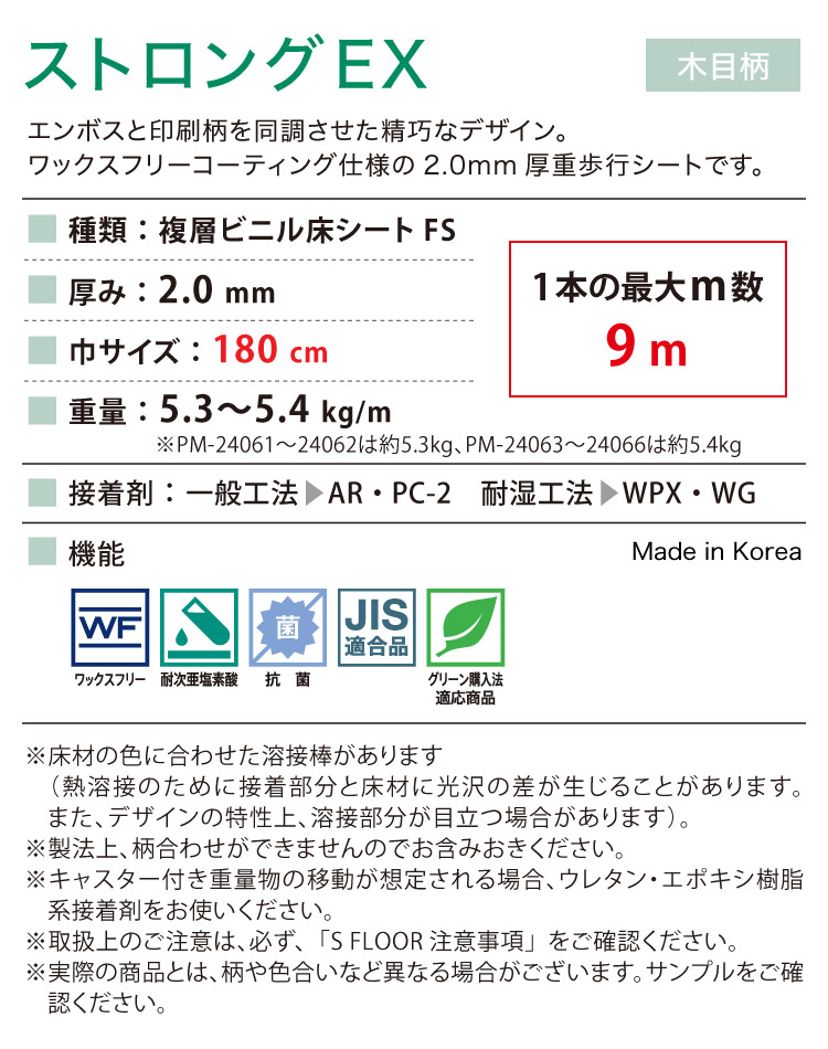 サンゲツ 長尺シート Sフロア ストロングEX 180cm巾 2mm厚 ノーワックス 抗菌 重歩行用 複層シート 木目調 [1m以上10cm単位 切売]