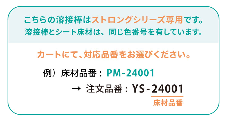 ●施工するシート床材専用の溶接棒をご使用下さい。溶接棒とシート床材は、同じ色番号を有しています