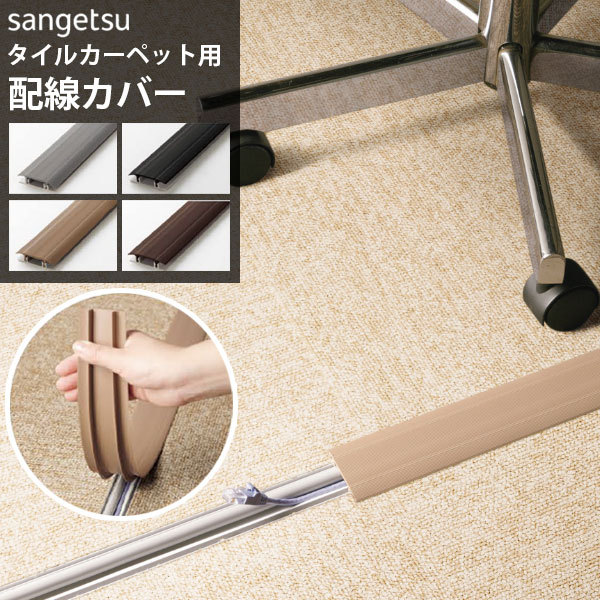 床の配線ををすっきり収納できるタイルカーペット用配線カバーです。段差が低く足元の悩みを解決します。ご家庭やオフィスの配線整理にどうぞ。