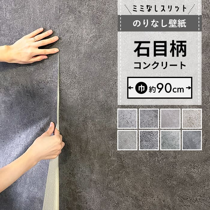 【スリット のりなし】壁紙 のりなし スリット壁紙 ミミなし コンクリート クロス ダークグレー 賃貸 原状復帰 DIY