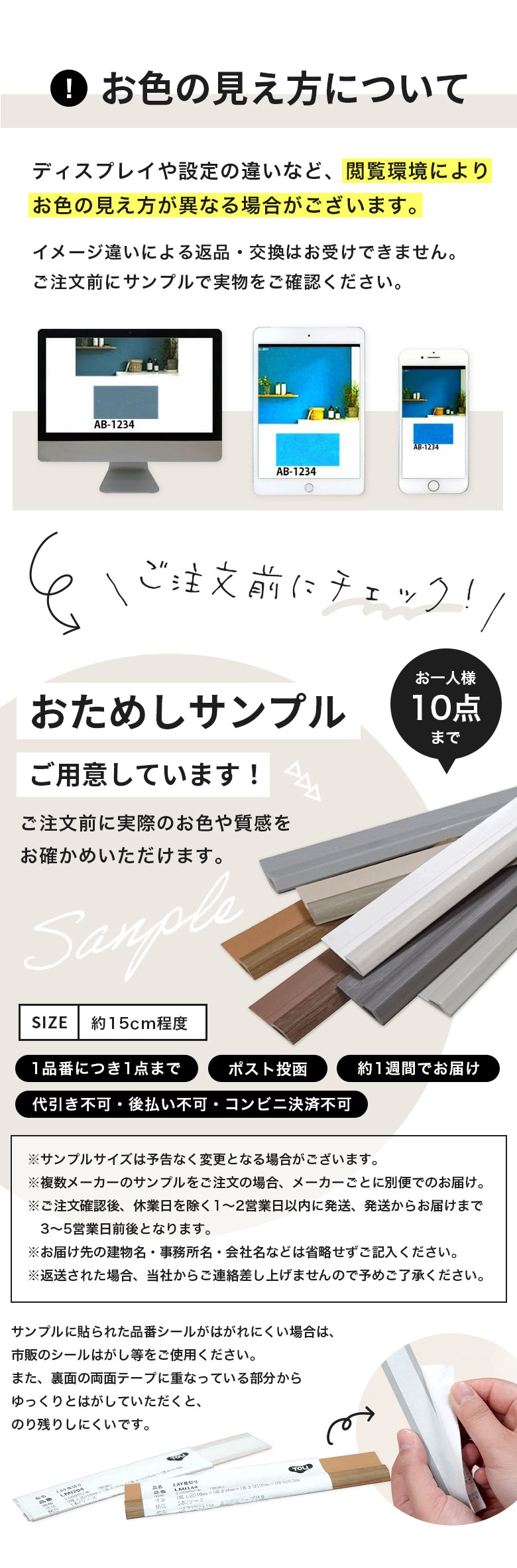 ・複数メーカーのサンプルをお申し込みの場合、メーカーごとに別々でのお届けです。