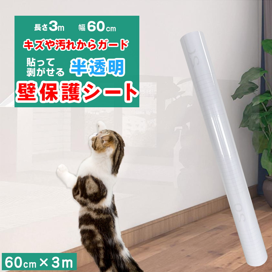 壁紙 3m 猫ちゃんの爪とぎ防止 壁 保護シート 透明 壁紙の上から 貼ってはがせる ねこ 猫 犬 爪研ぎ防止シート 引っ越し 賃貸入居 賃貸可 賃貸OK 強粘着