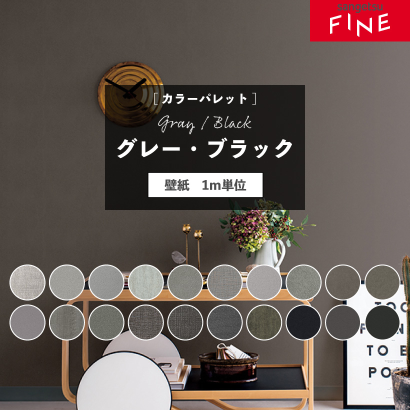 【最大★10%オフクーポン】 壁紙 グレー ブラック 選べる のりなし のり付き 自分で 張り替え クロス サンゲツ ファイン おしゃれ 壁紙の上から貼る壁紙