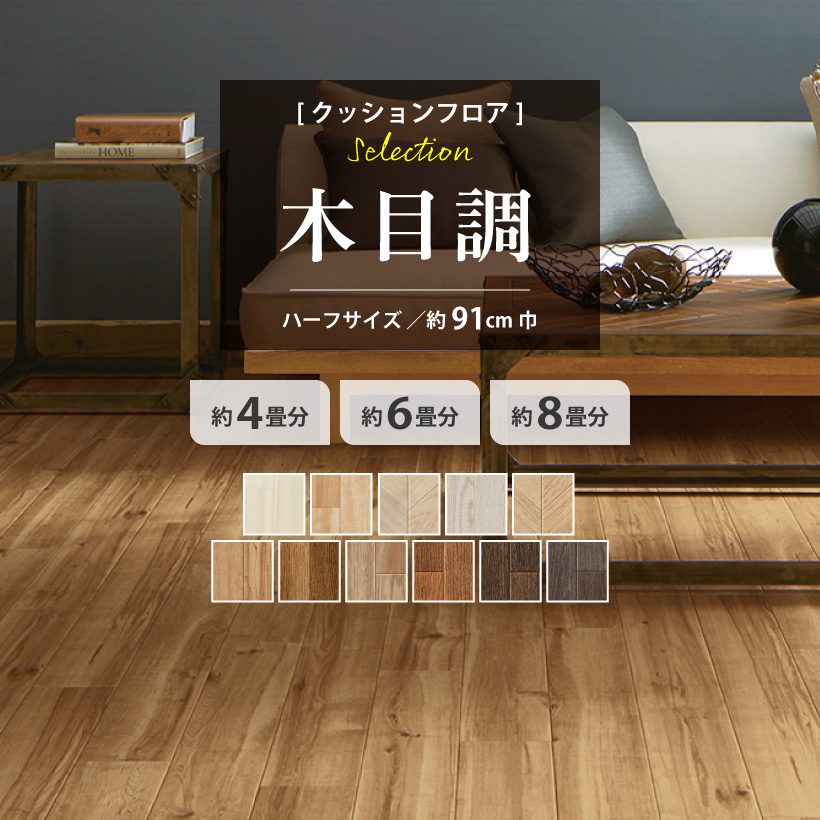 【最大★10%オフクーポン】 クッションフロア 4畳用 6畳用 8畳用 木目調セレクション サンゲツ 約91cm巾 ハーフサイズ