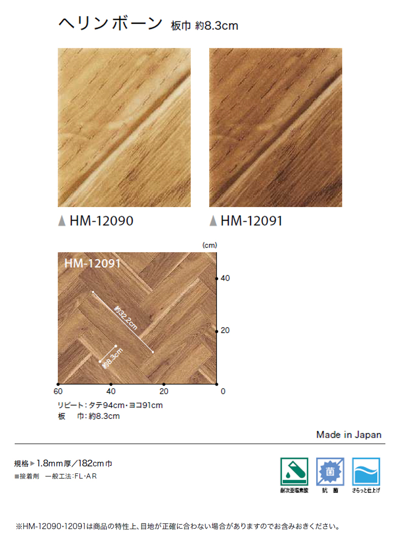 | HM-12090:1.8mm厚 182cm巾 HM-12091:1.8mm厚 182cm巾 1巻最大20m巻※最大巻を越えた数量のご注文はカットして出荷しますのでご注文確認画面内の入力項目にご希望のカット明細をご入力ください。 |