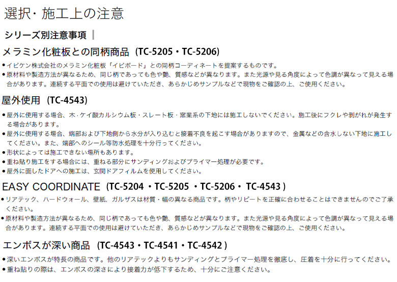 選択・施工上の注意の画像をご確認ください