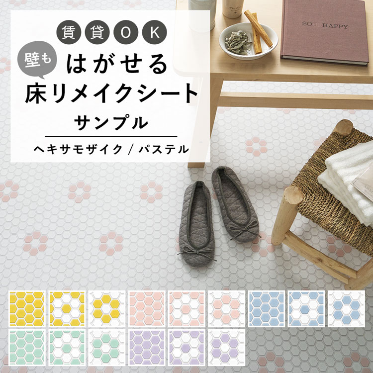 サンプル はがせる 床 シート 粘着 フロアシート ヘキサモザイク タイル柄 パステル 六角形 花 ハッテミーフロア トイレ 玄関 キッチン 賃貸