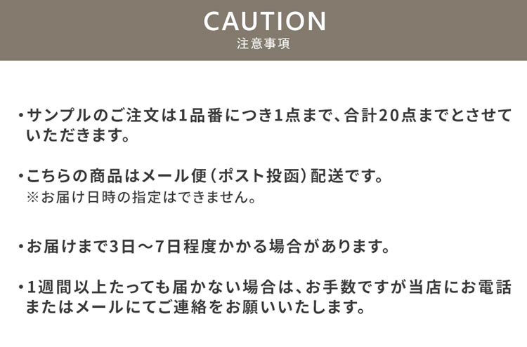 ※サンプルは、お一人様合計20点まででお願いいたします。