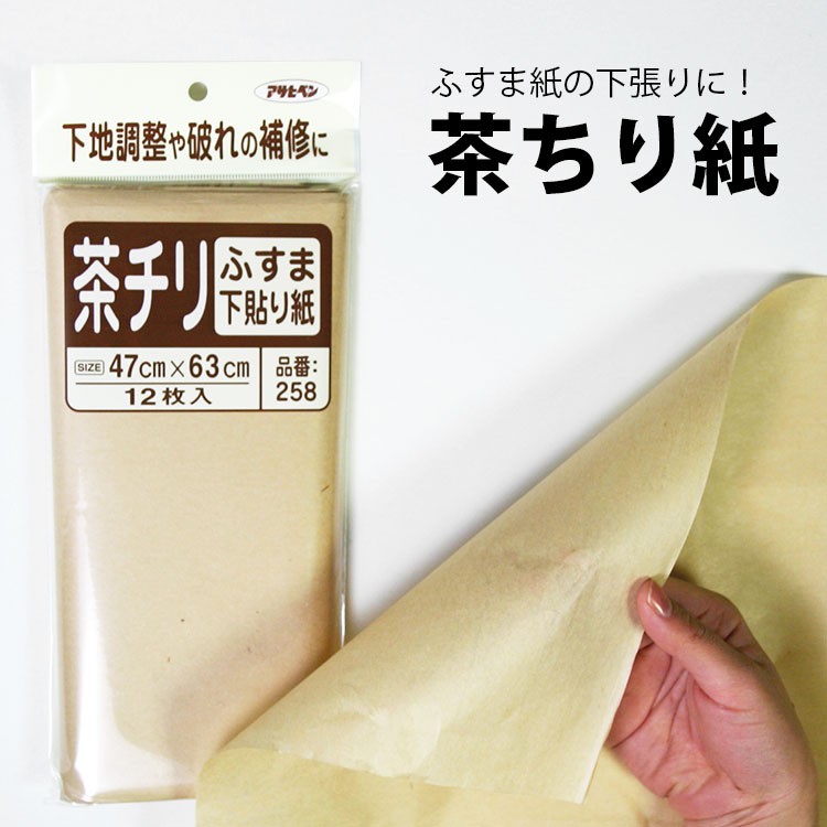 茶ちり紙とは、ふすま紙のベースになる、下張り用の紙です! 基本的には、今ある、ふすま紙の上から、新しいふすま紙を張ることができますが、