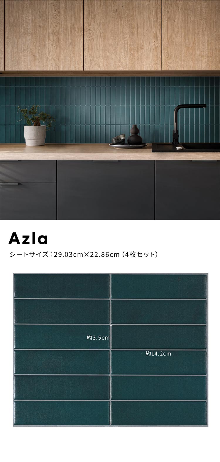 Azla マットブルー 青 緑 グリーン タイルシート フェイクタイル ウォールステッカー 3Dステッカー 吸着 拭ける 壁紙シール ナチュラル インテリア おしゃれ diy 高級感 水回り キッチン 洗面所 トイレ 壁紙屋本 舗