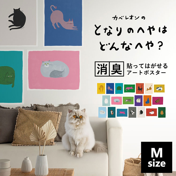 ポスター 猫 ねこ アートポスター 北欧 おしゃれ 貼ってはがせる Mサイズ 60cm×45cm 消臭機能付き
