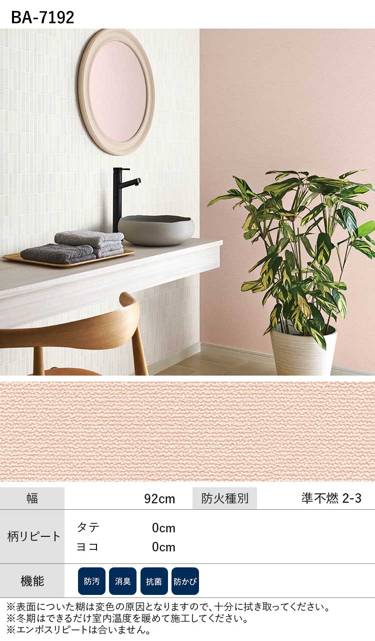 BA7190 BA7191 BA7192 BA7193 BA7194 BA7195 無地 ナチュラル 北欧 ホワイト 白 ブラウン ピンク イエロー ベージュ 貼り替え アクセント クロス リビング トイレ 天井 キッチン ふすま 襖 壁紙屋本 舗 ポイント利用