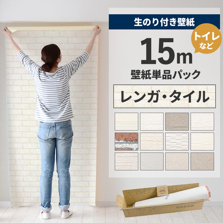 壁紙 のり付き 15m クロス 張り替え 自分で レンガ 煉瓦 タイル柄 替え刃 貼り方マニュアル付き トイレ