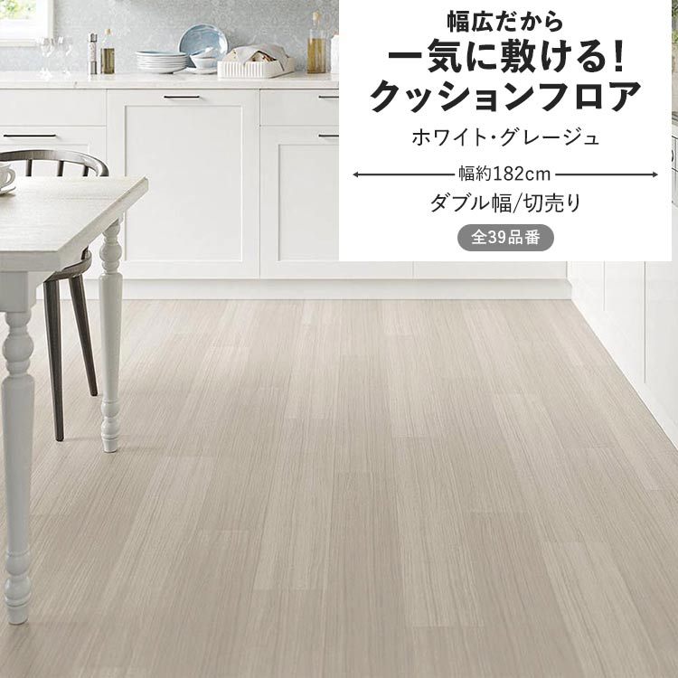 クッションフロア ホワイト・グレージュ クッションシート 幅約182cm 切売り 白 ベージュ アッシュ 木目