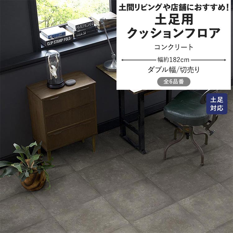 クッションフロア 土足 コンクリート クッションシート 幅約182cm 切売り グレー ベージュ モルタル シンプル