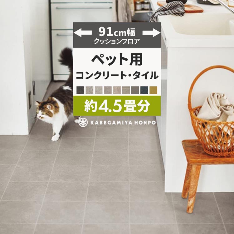 クッションフロア ペット 滑らない 4.5畳用 約91cm幅 コンクリート タイル柄 クッションシート 床 長さ9m