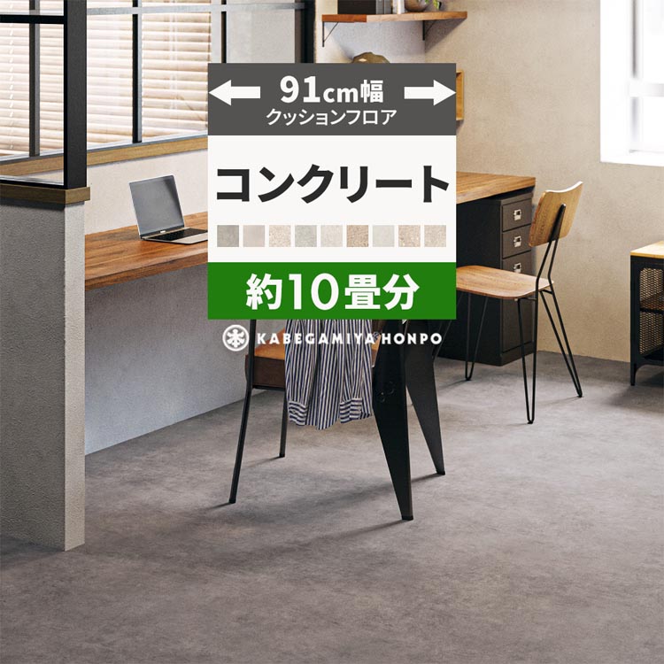 クッションフロア 10畳用 約91cm幅 コンクリート 石目 クッションシート 床 フローリングシート 住宅用 10m巻×2本