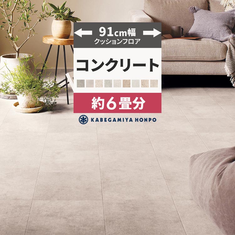 クッションフロア 6畳用 約91cm幅 コンクリート 石目 クッションシート 床 フローリングシート 住宅用 長さ12m 爆買