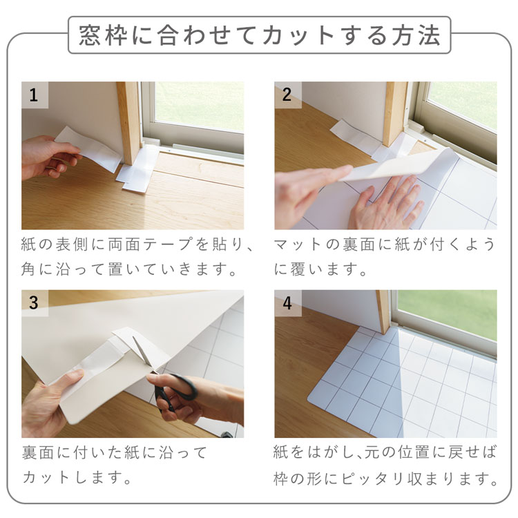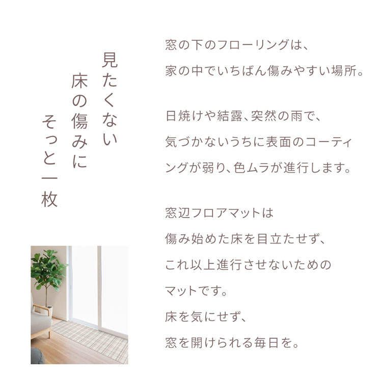 そんな傷み始めた床を目立たせず、さらなるダメージから守る、窓辺用のフロアマットです。