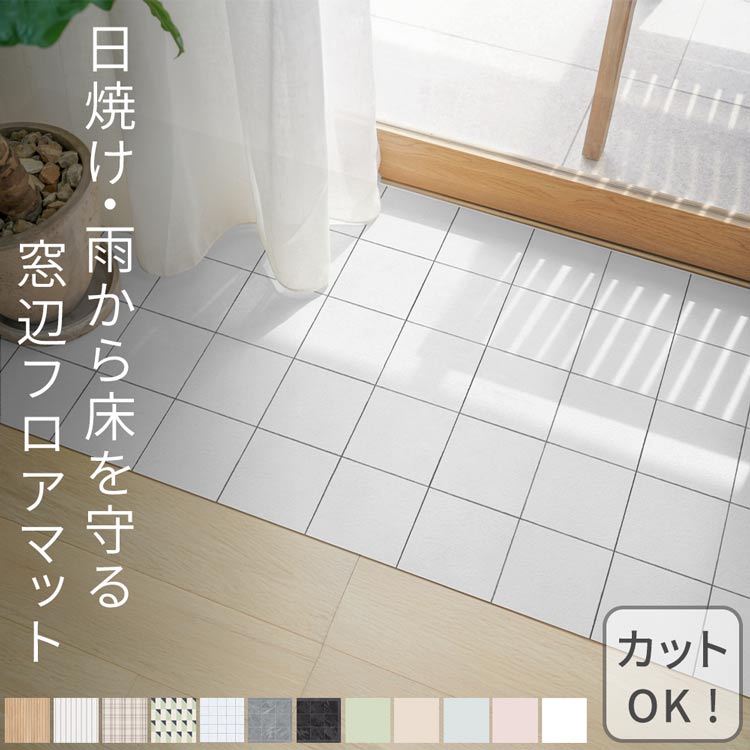 マット 床 窓辺 フロアマット フローリング保護 日焼け防止 約 210cm × 48cm pvcマット 耐水 タイル 木目 石目 大理石 無地 白 ホワイト 壁紙屋本舗