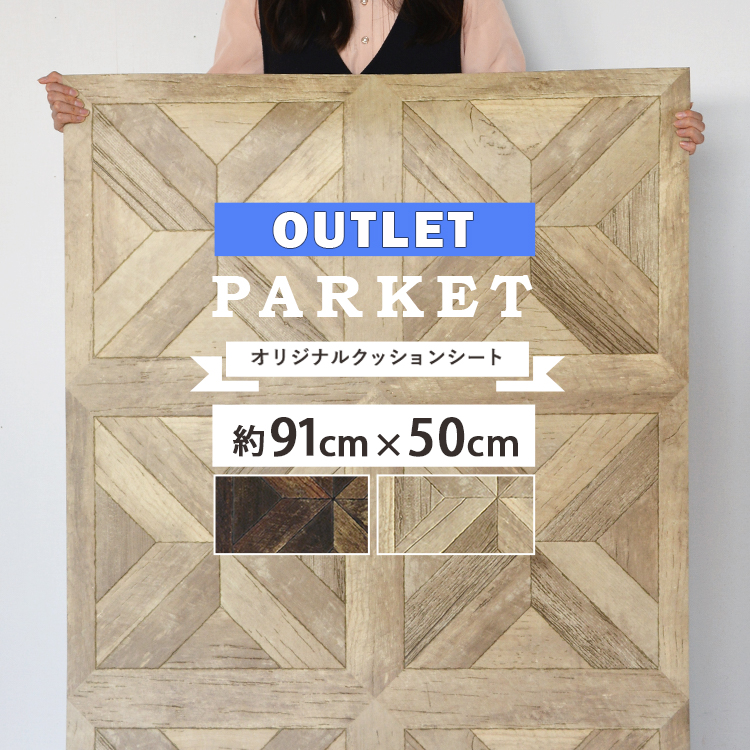 クッションフロア 端切れ アウトレット パーケットフロア柄 クッションシート 約91cm × 50cm 木目 ウッド ナチュラルオーク ダークオーク