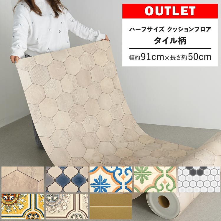 クッションフロア 端切れ アウトレット タイル柄 クッションシート ハーフサイズ パターン 約91cm × 50cm ハニカム 住宅用