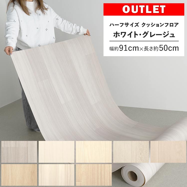 クッションフロア 端切れ アウトレット ホワイト・グレージュ クッションシート ハーフサイズ 約91cm × 50cm 木目 白 フローリング 住宅用