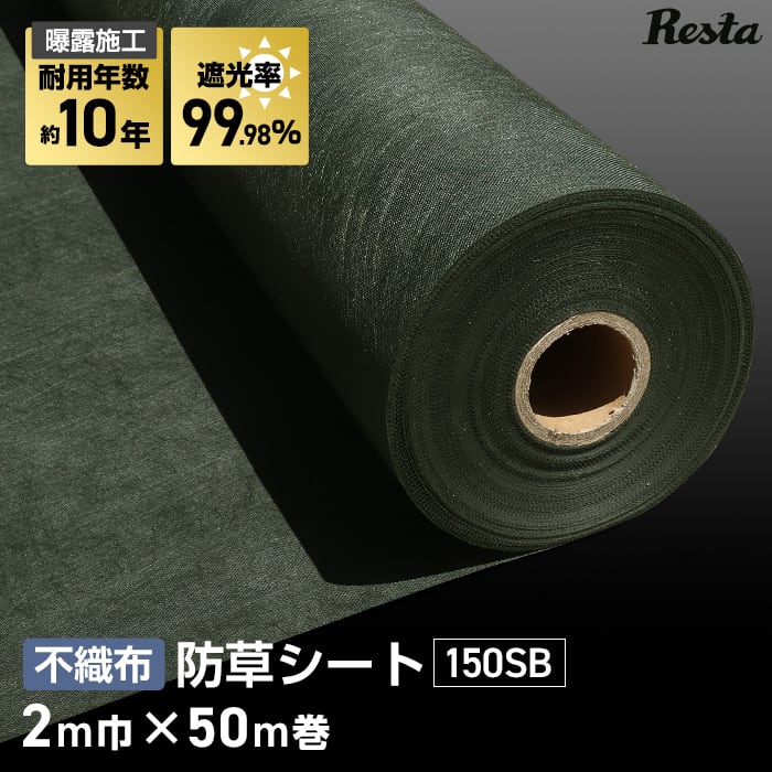 DIY RESTA リスタ 新生活 爆買 送料無料 サンプル 防草シート 10年 2m×50m 不織布 高耐久 緑 グリーン 高密度 厚手 おすすめ 強力 除草シート 雑草シート 除草 防草 雑草対策 雑草防止 雑草抑制 雑草処理 防そうシート 透水 曝露施工 むき出し 暴露 庭 畑 草刈り不要 あすつく 即日出荷