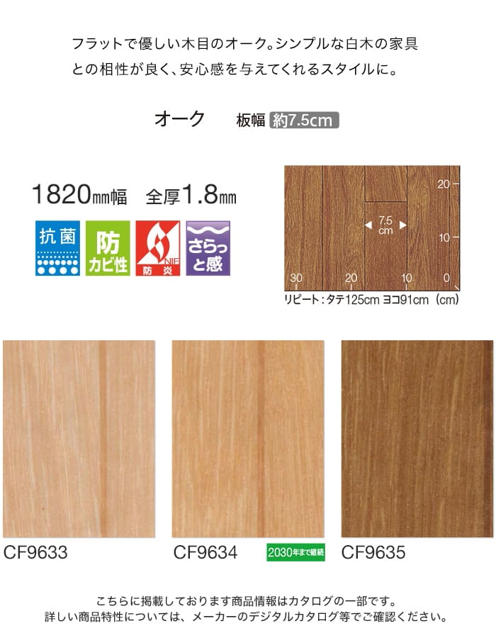 クッションフロア 木目 住宅用 182cm巾 1.8mm厚 東リ オーク CF9633〜