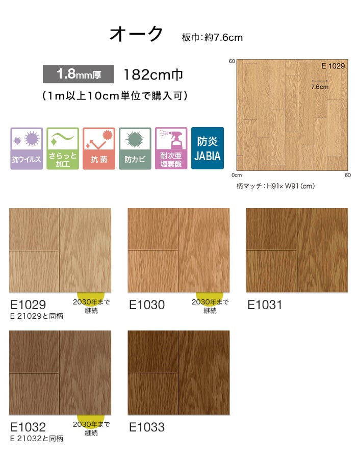 クッションフロア 法人・個人事業主様専用 木目柄 住宅用 シンコール 182cm巾 1.8mm厚 オーク E1029