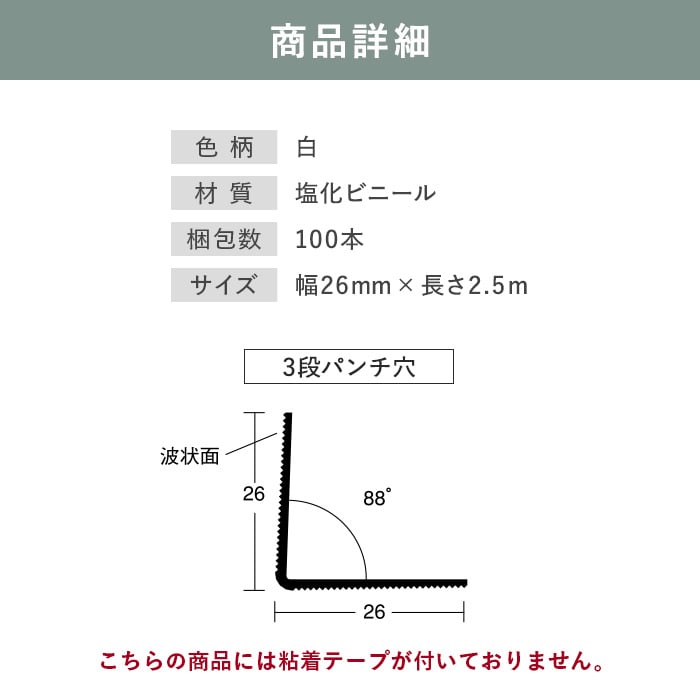 クロス下地コーナー材 コーナーテープ DX−GLコーナーPA26 2.5m 100本入