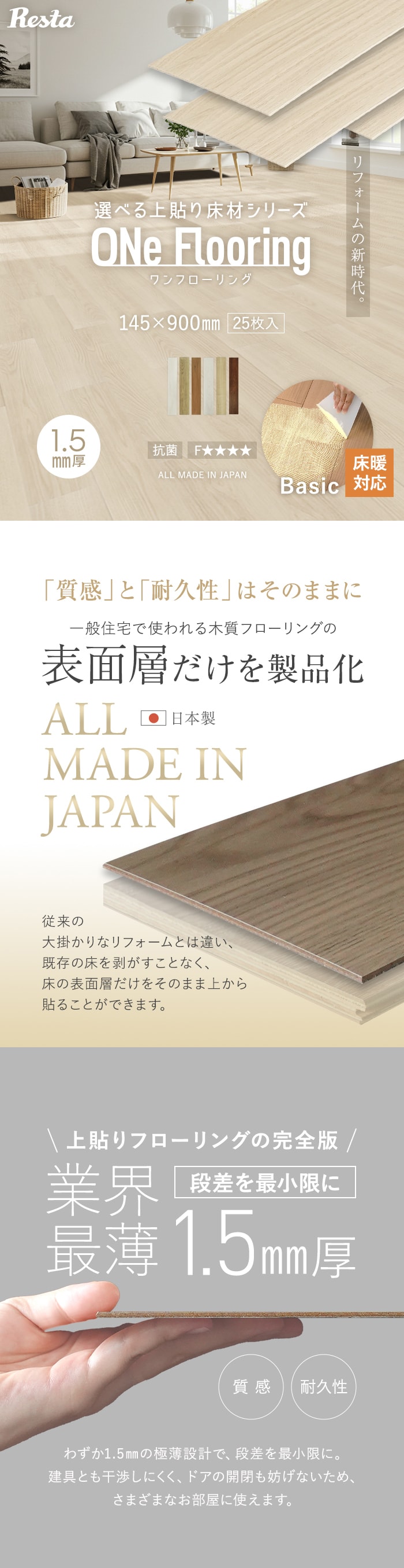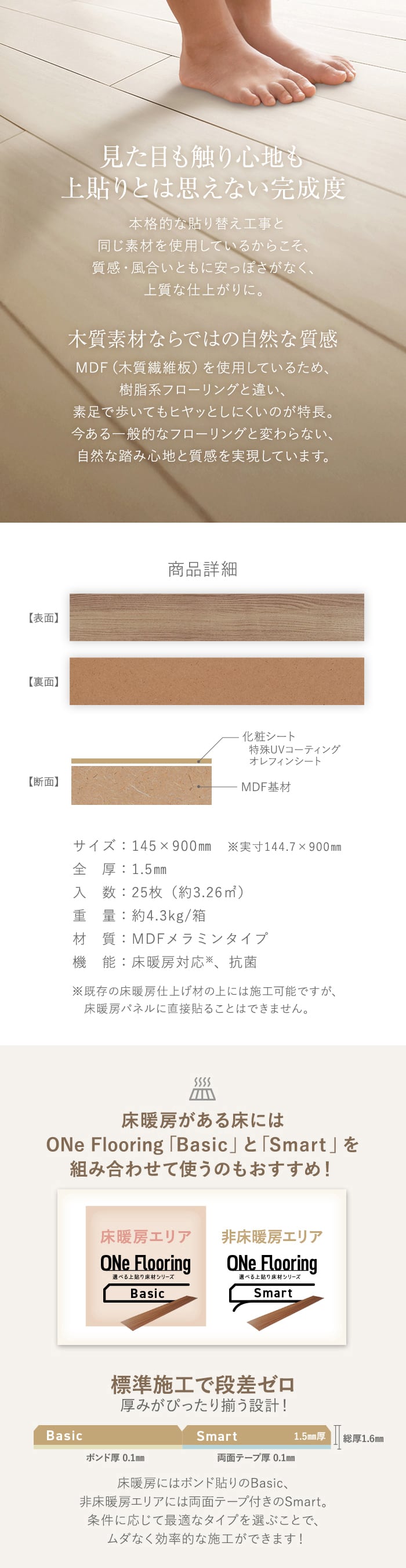 上貼り床材 ワンフローリング 1.5mm Smart 25枚入(約3.26平米) 全面両...