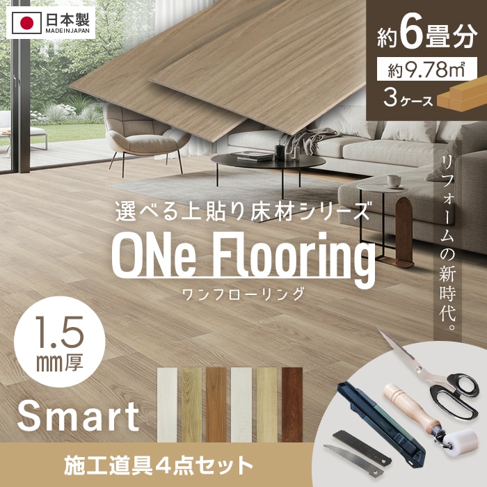 フローリング材 上貼り床材 ワンフローリング 1.5mm Smart 6畳セット(3ケース+道具セット)