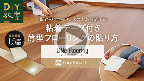業界最薄の1.5mm厚。一般的なフローリングの表面だけを上貼り床材として製品化!全面両面テープ付きで初めてのDIYでも簡単に施工可能!