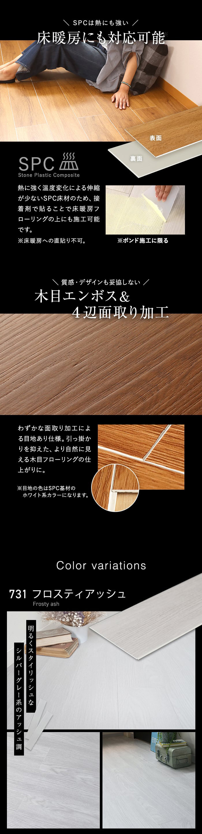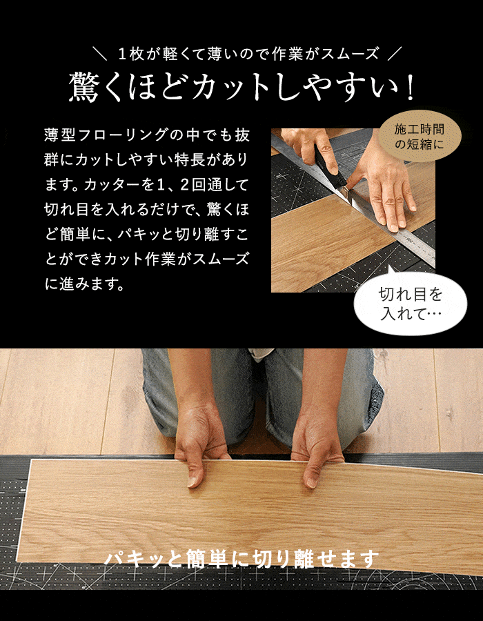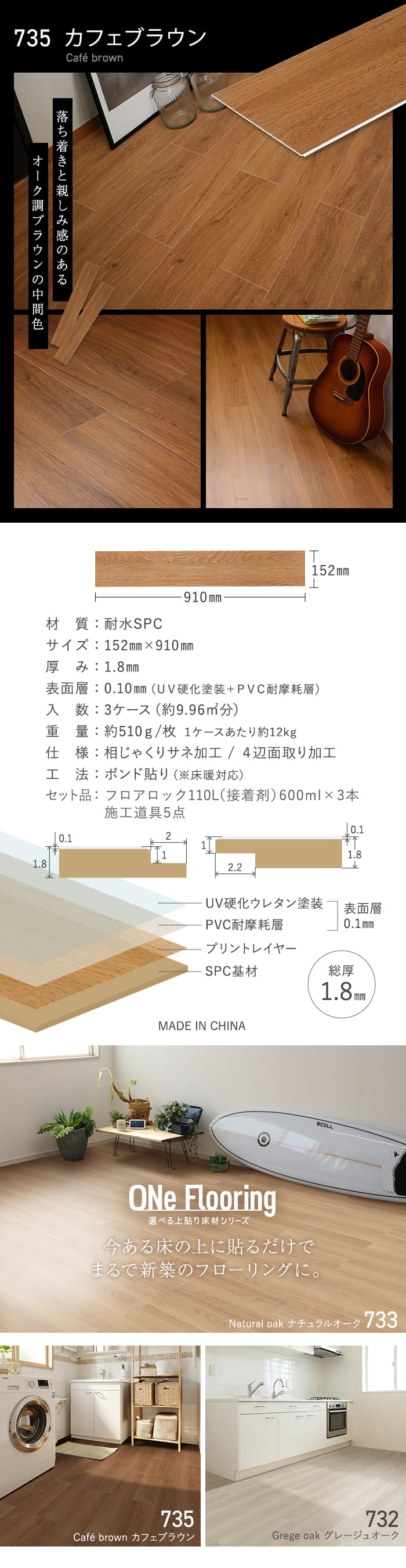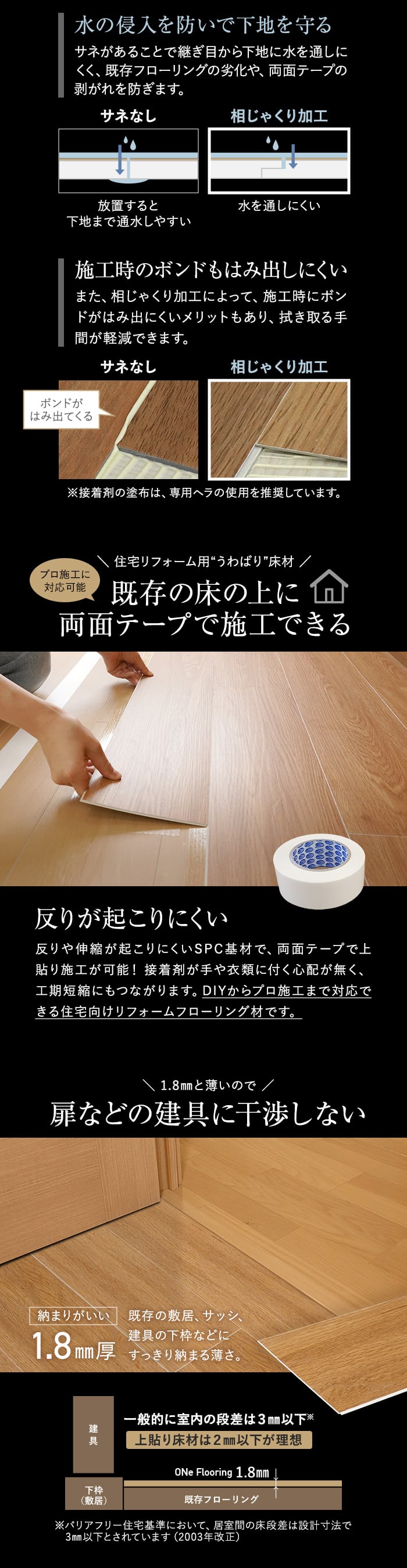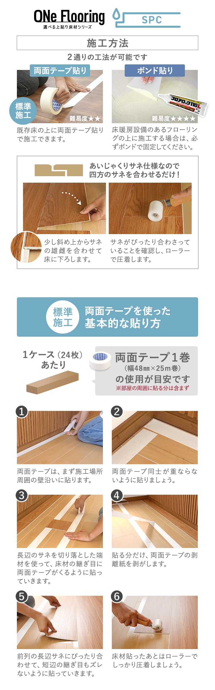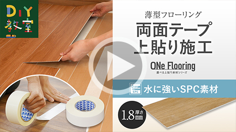 上貼り床材 ワンフローリング 1.8mm耐水SPC 6畳セット(3ケース+両面テ...